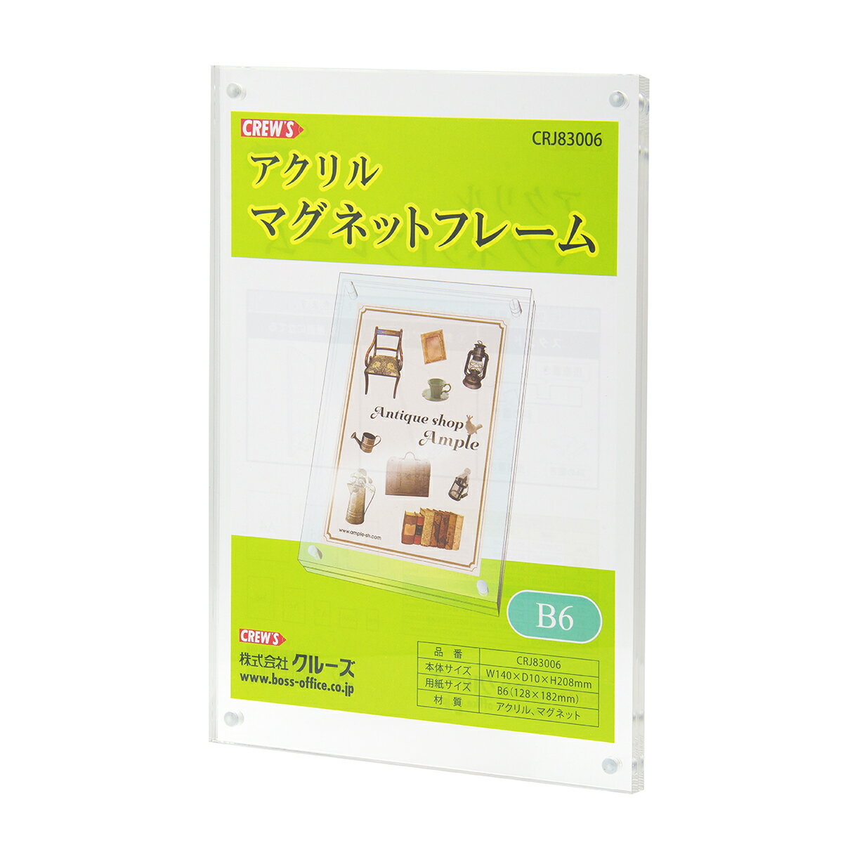 【メーカー直販品】CREW'S (クルーズ)アクリルマグネットフレーム CRJ83006 B6【オフィス事務用品 店舗用品 店舗備品 ホルダー プライスホルダー POP プライスカード ポスター 掲示 透明 クリア 高級感 置き型 スタンド別売】
