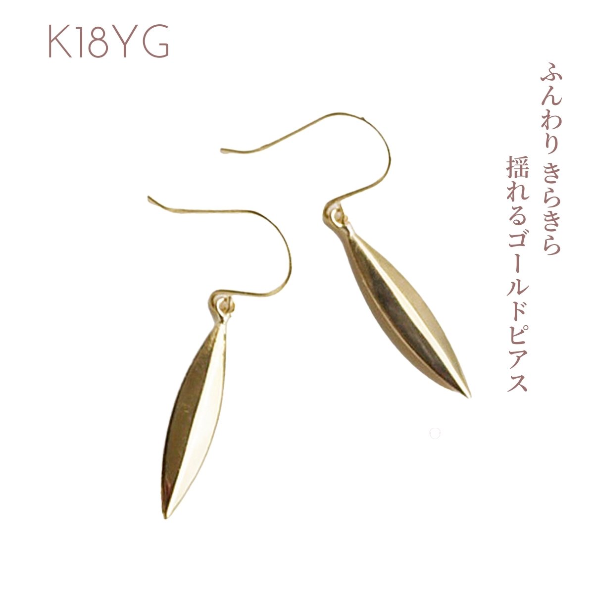 ピアス 揺れる 揺れるピアス レディース K18 k18 YG イエローゴールドピアス フックピアス 地金ピアス ぶらさかりピアス リーフモチーフ 普段使い つけやすい キャッチレス 外れにくい クリスマス ホワイトデー 母の日ギフト