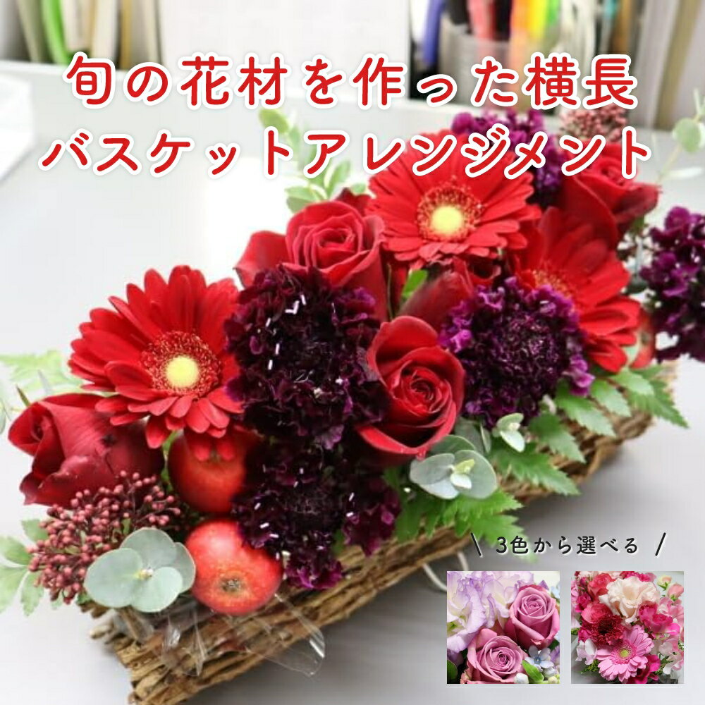 3色から選べる バラ 季節のお花 バスケット アレンジメント フラワー装飾一級技能士 手作り レッド ピンク イエロー