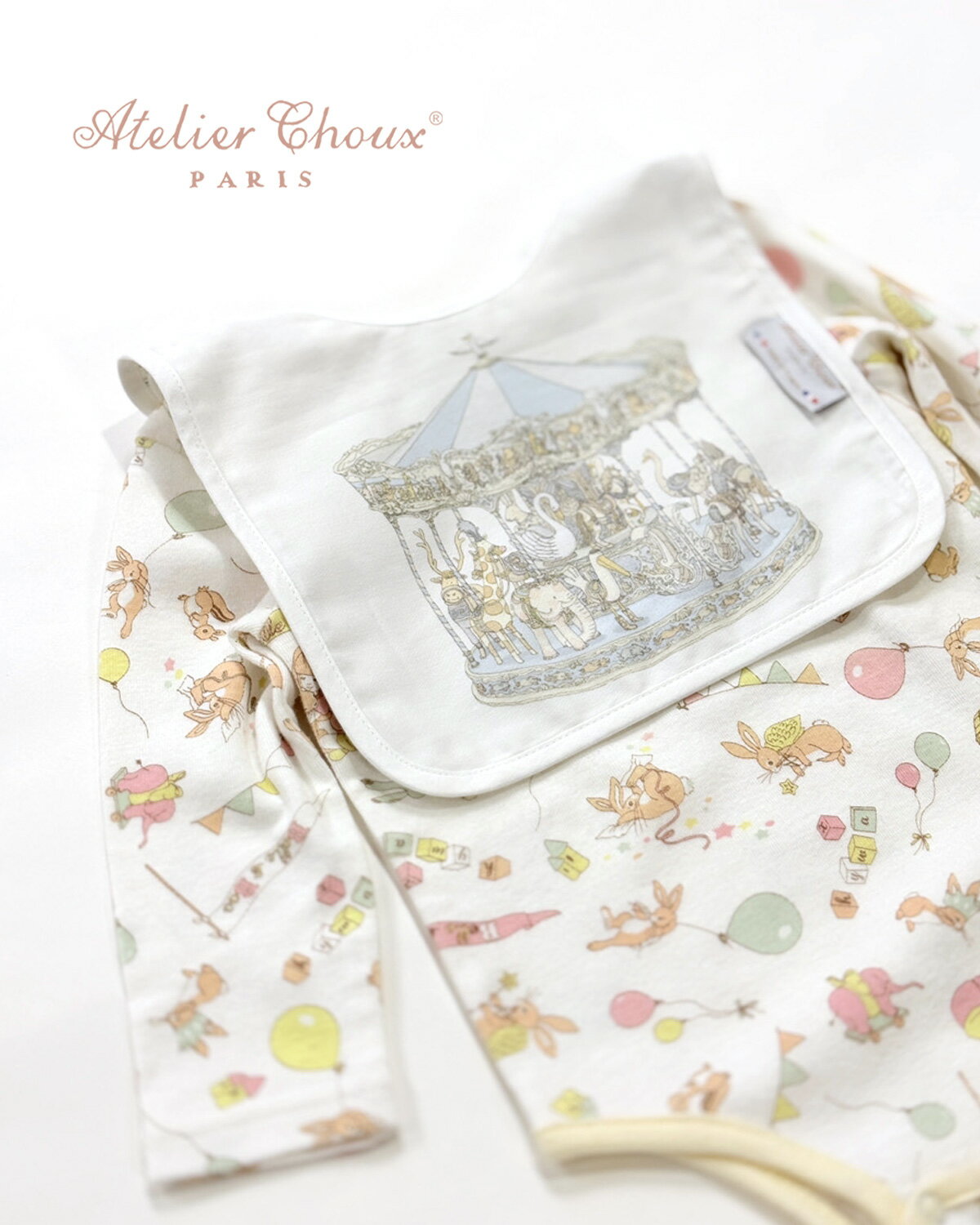 スタイ+長袖ロンパース ギフトセット 箱入り 出産祝い ベビーギフト アトリエシュー サテンスタイ よだれかけ ベルアンドブー ロンパース 70cm ベビー服 AtelierChoux アトリエシュウ 正規輸入品 Belle&Boo