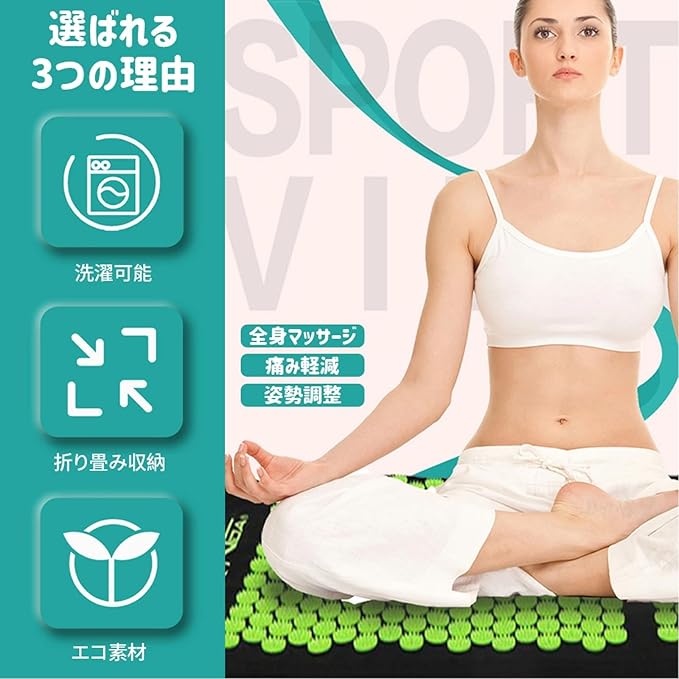 指圧マット ツボ刺激 マッサージ ヨガマット ピローセット 収納袋付き 枕付き 全身リラックス ストレス解消 背中・首・肩こり対策 瞑想 ストレッチ 自宅リラクゼーション用 3点セット 男女兼用