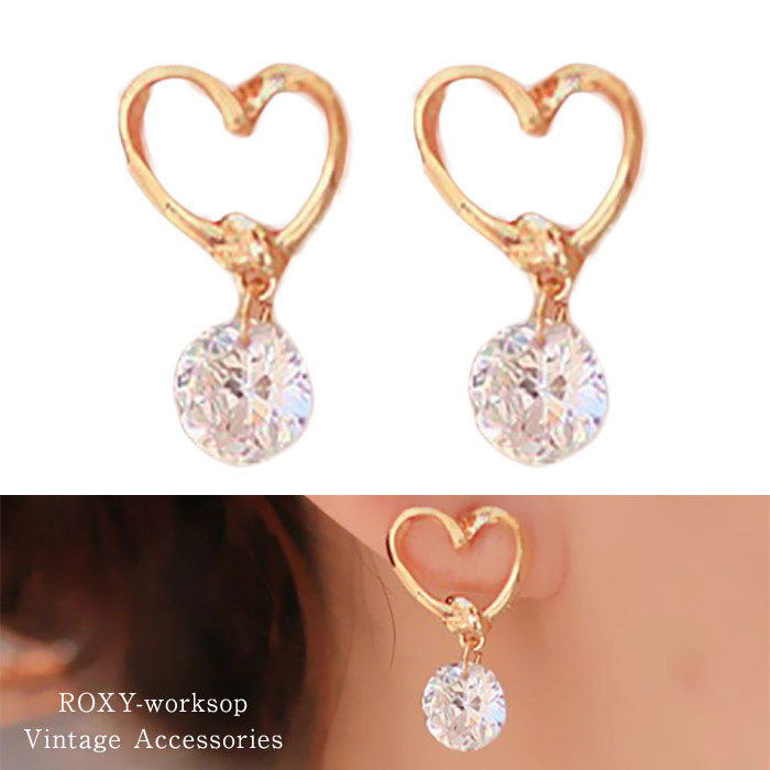 【送料無料】 ピアス ハート ダイヤ ストーン ラインストーン 可愛い ビンテージ アクセサリー 大人 かわいい レディース ガーリー シルバー ゴールド イベント パーティ