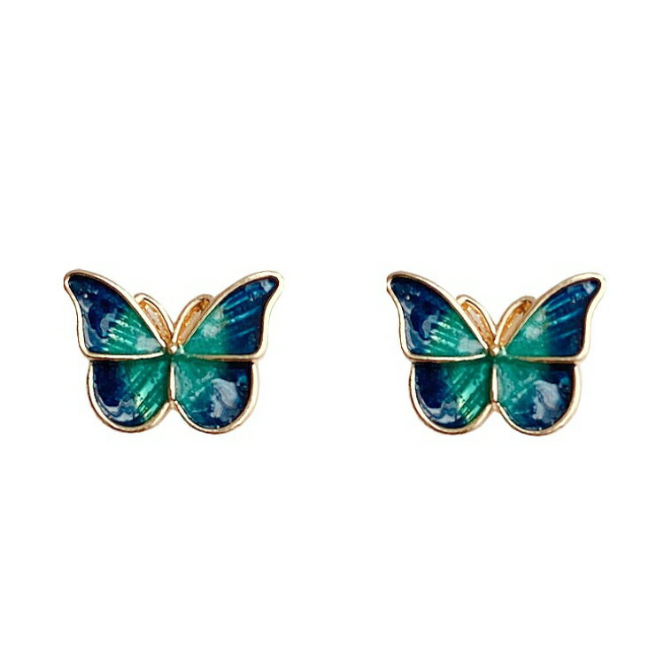 【夜に舞うグラデーション蝶々ピアス】 ちょうちょ ブルー グリーン 大人 レディース 女性 20G ペア