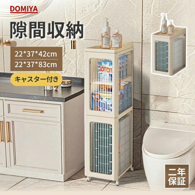 DOMIYA 隙間収納 折りたたみ式 洗面所収納 簡単組み立て 洗面所収納ラック ランドリー収納 収納ボックス スリム ランドリーラック キッチン収納 洗面所 収納 お風呂 食器棚 サニタリーラック ストッカー収納 二年保証