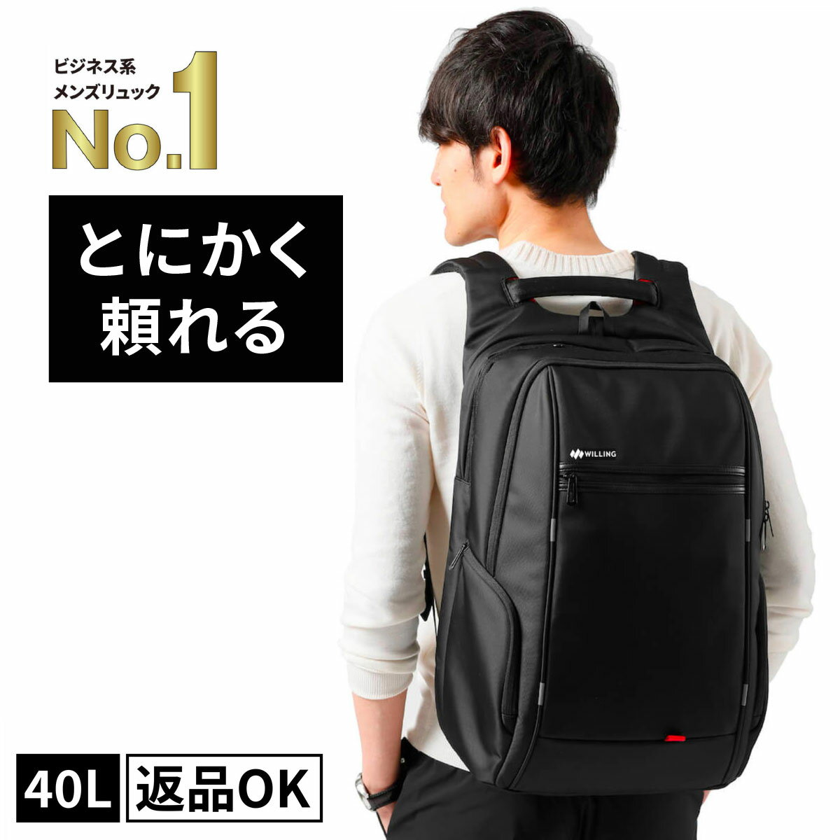 【圧倒的な高評価レビュー4.5点!】40L 大容量 軽く感じる ビジネス リュック 防水 防災 帰省 旅行 レインカバー チェストベルト 付属 メンズ A3 サイズ ノートPC バイク 通勤 通学 出張 収納 バックパック リュックサック ブラック 黒