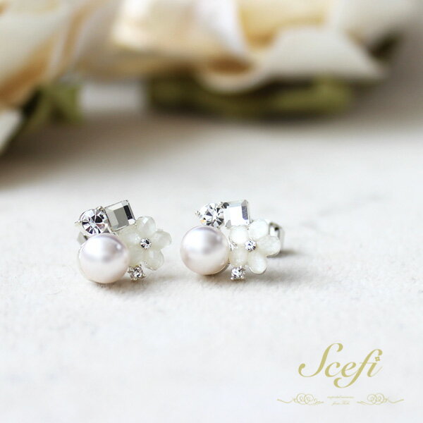 イヤリング パール フラワー ラインストーン セレモニー 結婚式 パーティー 上品 フェミニン