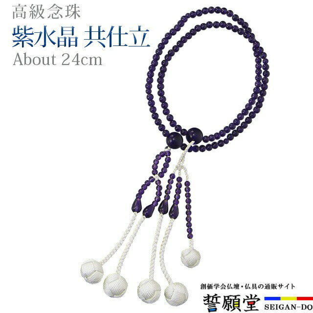 数珠 念珠 【紫水晶 共仕立 正絹かがり梵天 8.0寸 桐箱入】お数珠 お念珠女性用 男性用 ブレスレット 女性 男性 創価学会 パーツ 二連 ネックレス ペア SGI
