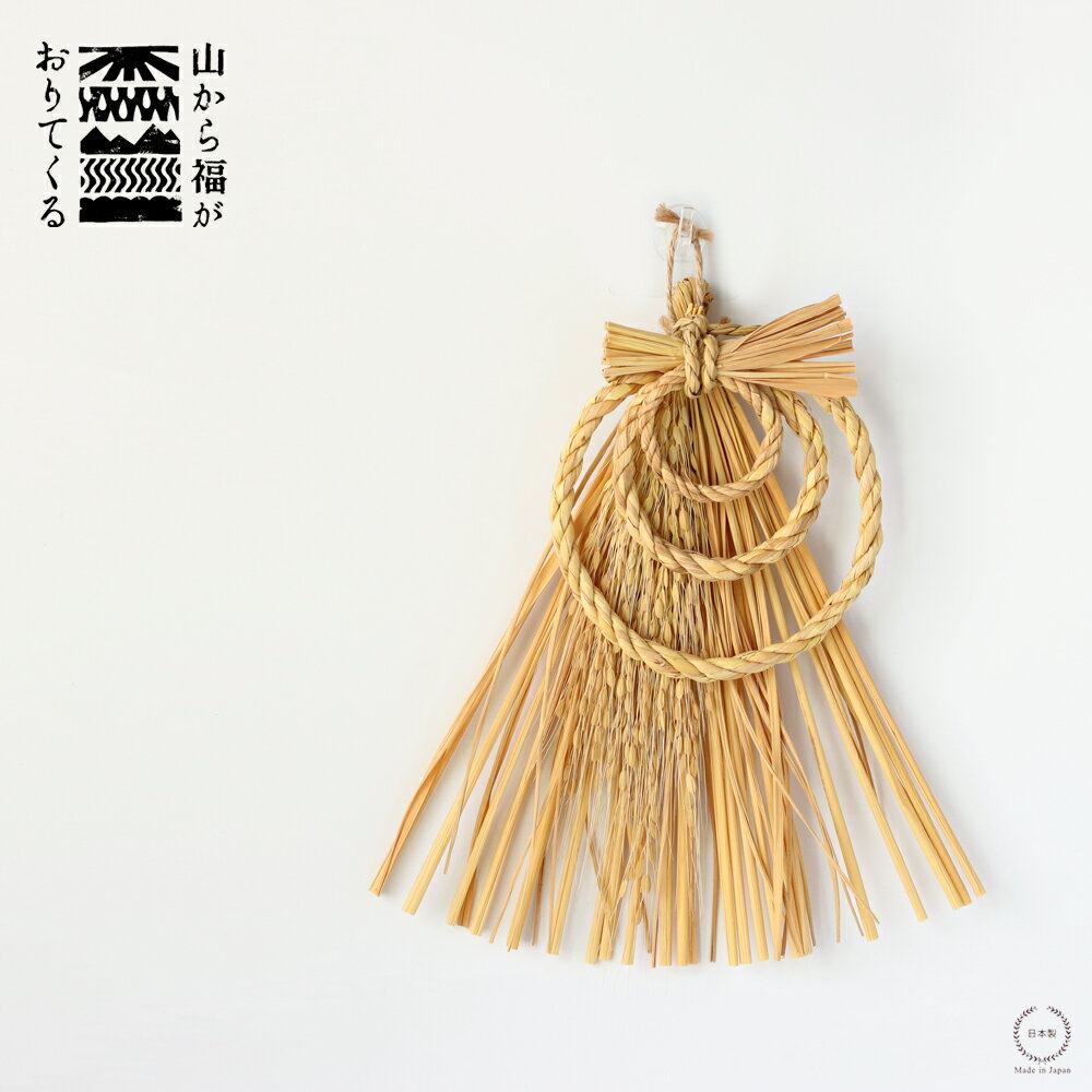 山から福がおりてくる しめ飾り 末広輪三連(すえひろわさんれん) 白【正月飾り インテリア 壁面飾り 無農薬有機栽培 藁 日本製 吉野敏充デザイン事務所】