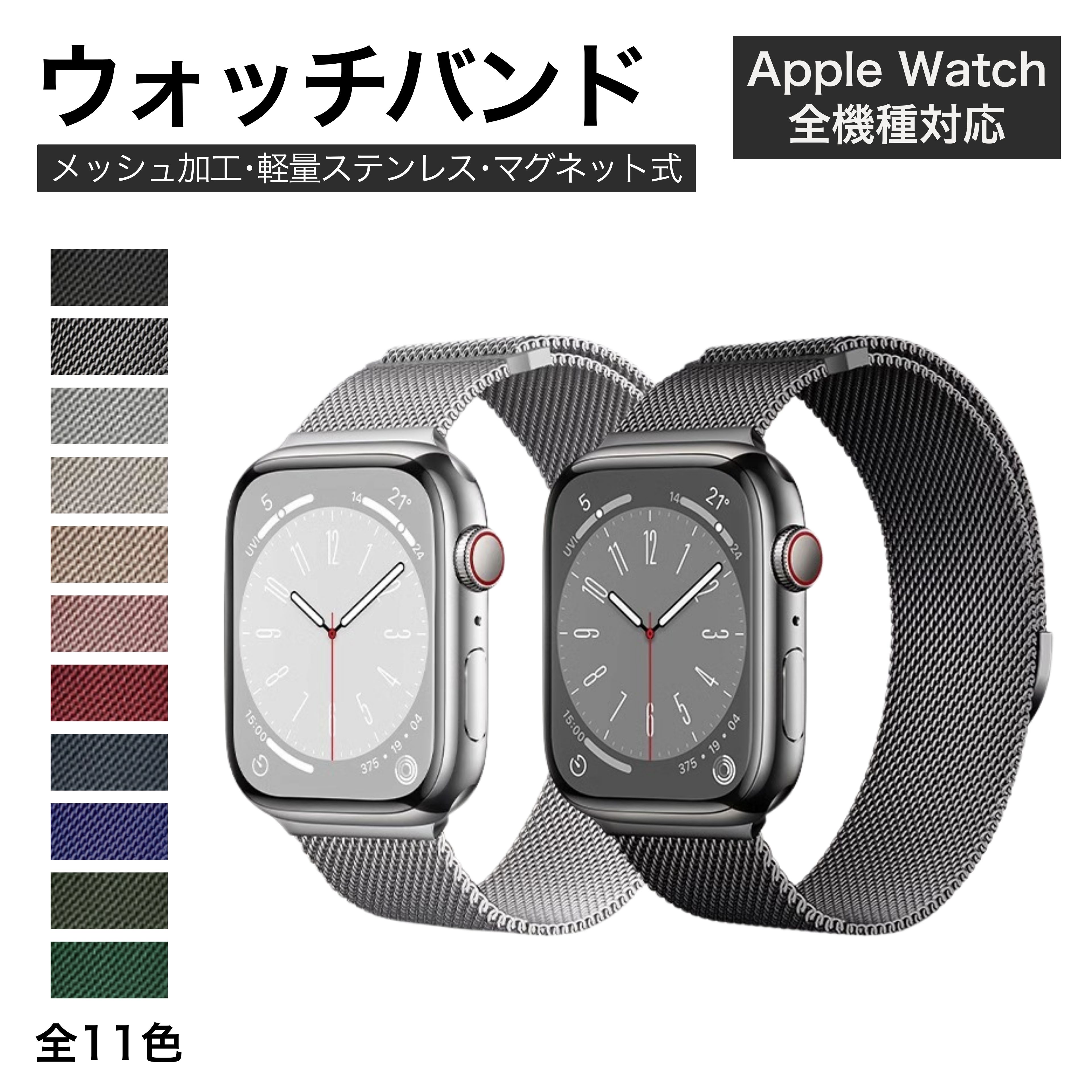 アップルウォッチ バンド メンズ おしゃれ Apple watch ベルト ステンレス マグネット 45mm 41mm 44mm 40mm 38mm 42mm 49mm メッシュ かわいい