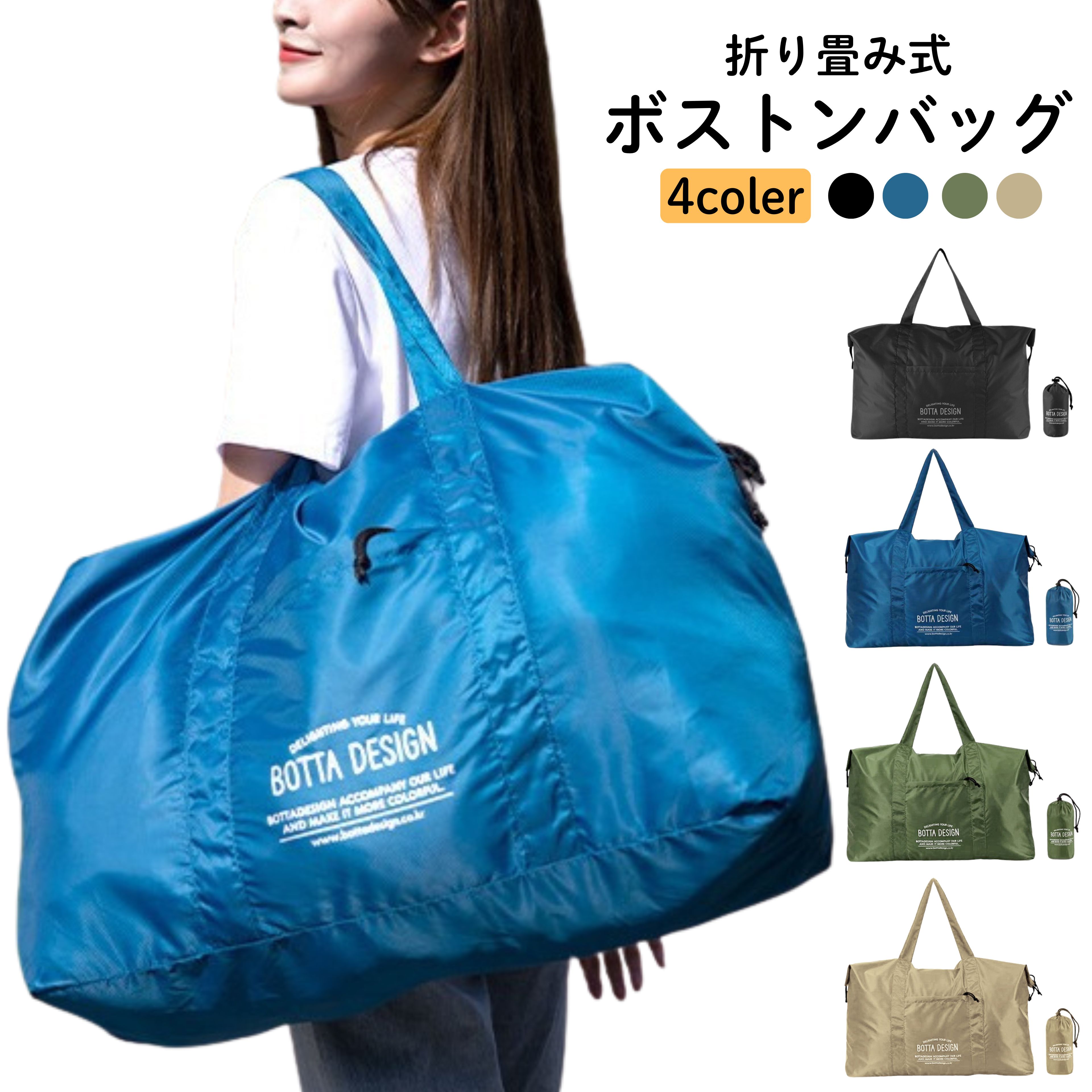 折り畳み式ボストンバッグ 手持ち 肩掛け ボストンバッグ キャリーオン可 キャリーオンバッグ ポケッタブルバッグ 折り畳み式 サブ エコ バッグ 大容量 旅行 出張