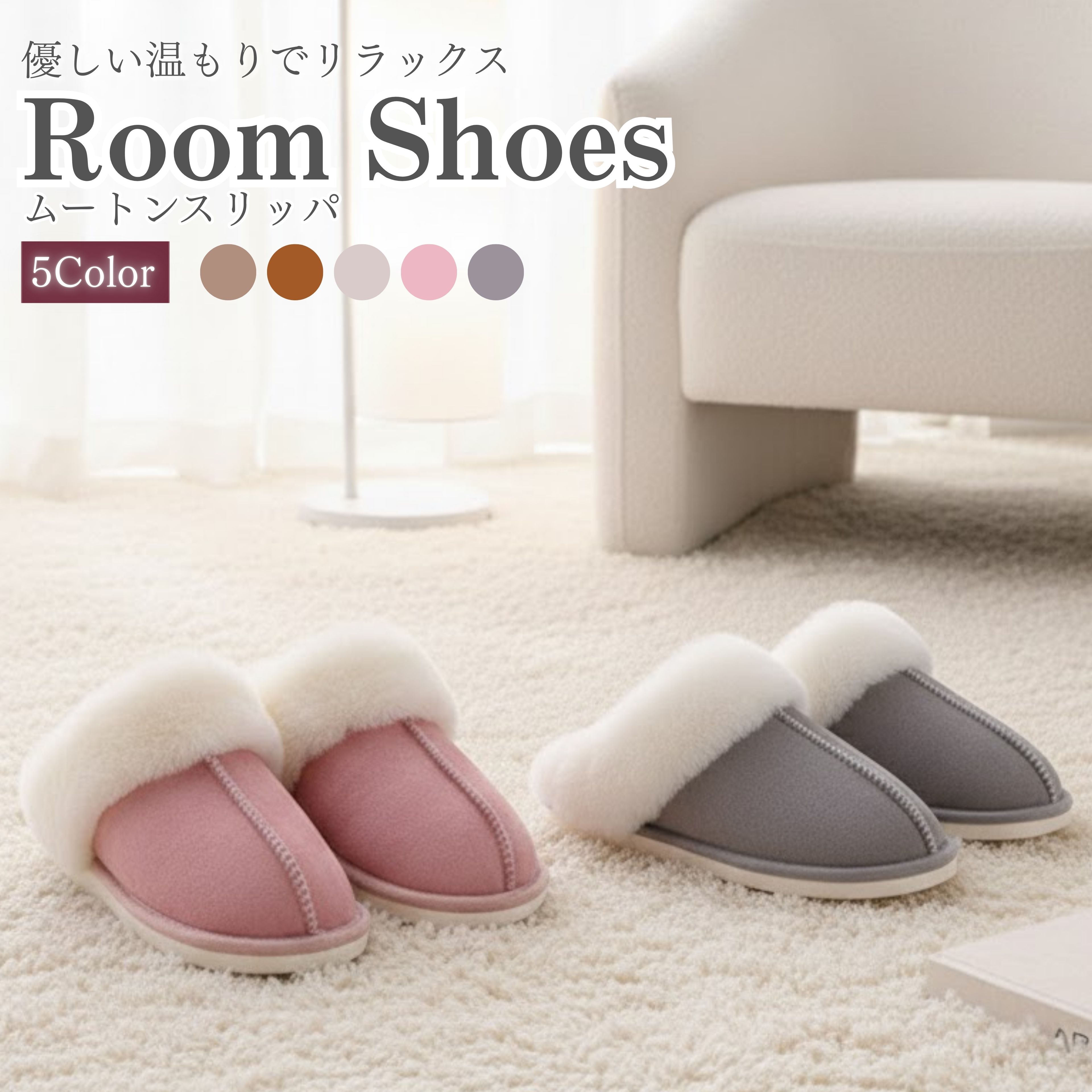 ルームシューズ レディース スリッパ 暖かい 洗える メンズ もこもこ ムートン 風 ムートンスリッパ ファー 冬 冬用 男女兼用 北欧 滑り止め あったか