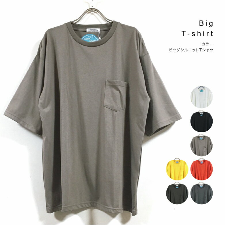 カラー ビッグシルエット ポケ付 半袖 Tシャツ 無地 25802 メンズ 【 送料無料 】 接触冷感 天竺 クルー トップス ビッグT オーバーサイズ ビッグサイズ tシャツ ストリート系 ファッション M L XL