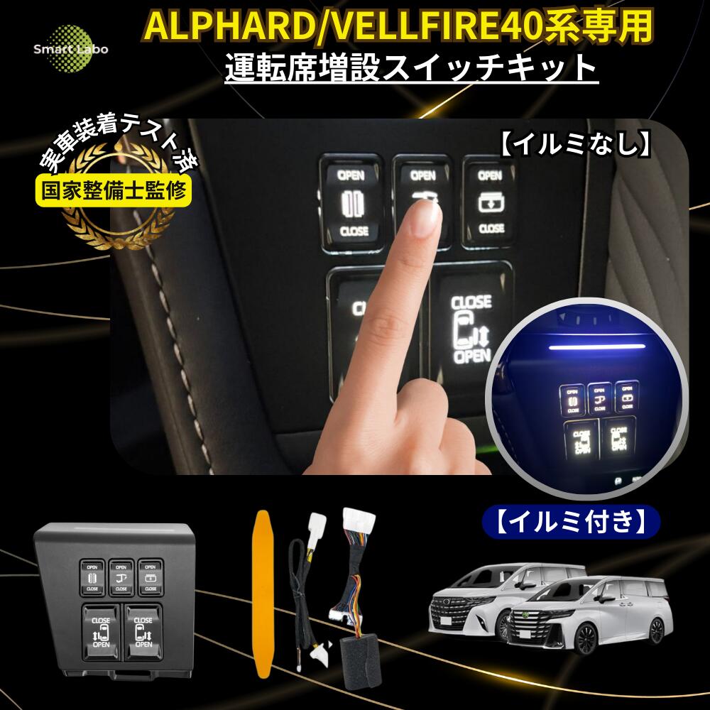【国家整備士監修】アルファード/ヴェルファイア40系 アクセサリー 専用設計 運転席増設スイッチキット カプラーオン取付簡単 増設 ドアスイッチ ムーンルーフ サンシェード スライドドア パワーバックドア 操作可能 【安心取付サポート付き】実車装着テスト済