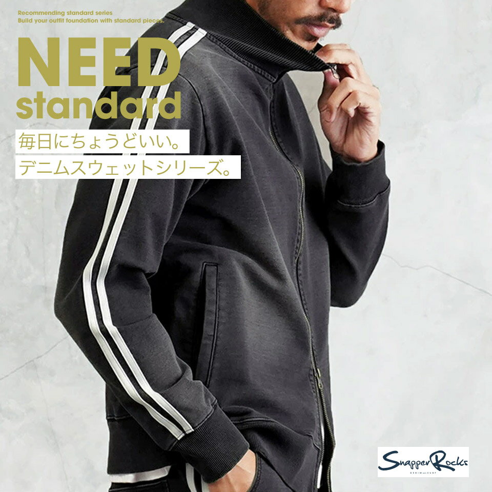 トラックジャケット メンズ ブルゾン アウター◆スウェットデニムトラックジャケット◆ジップ デニム スリム スウェット デニムジャケット デニムジャージ サイドライン ラインジャケット ストレッチ 細身 スポーツ ダンス ジム 秋服