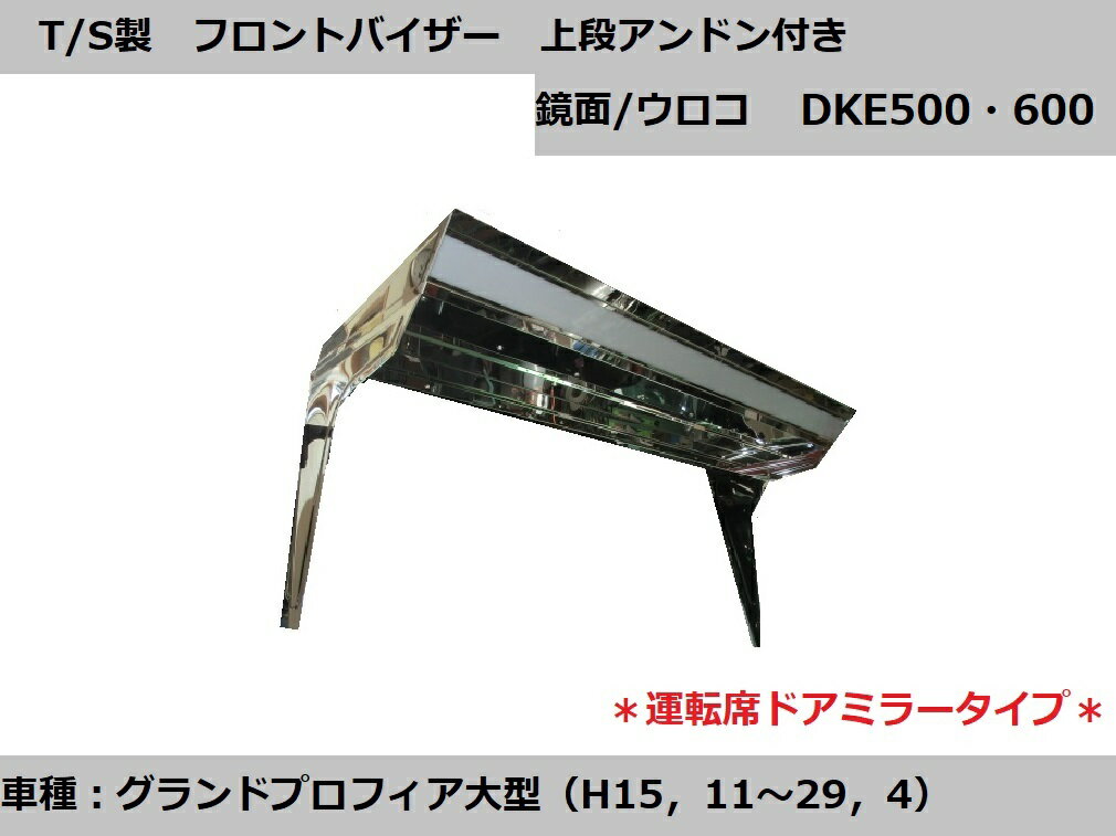 日野大型 グランドプロフィア 運転席ドアミラータイプ フロントバイザー DKE-601 ミラー格納式上段アンドン付 標準ルーフ/ハイルーフ 鏡面 ウロコ