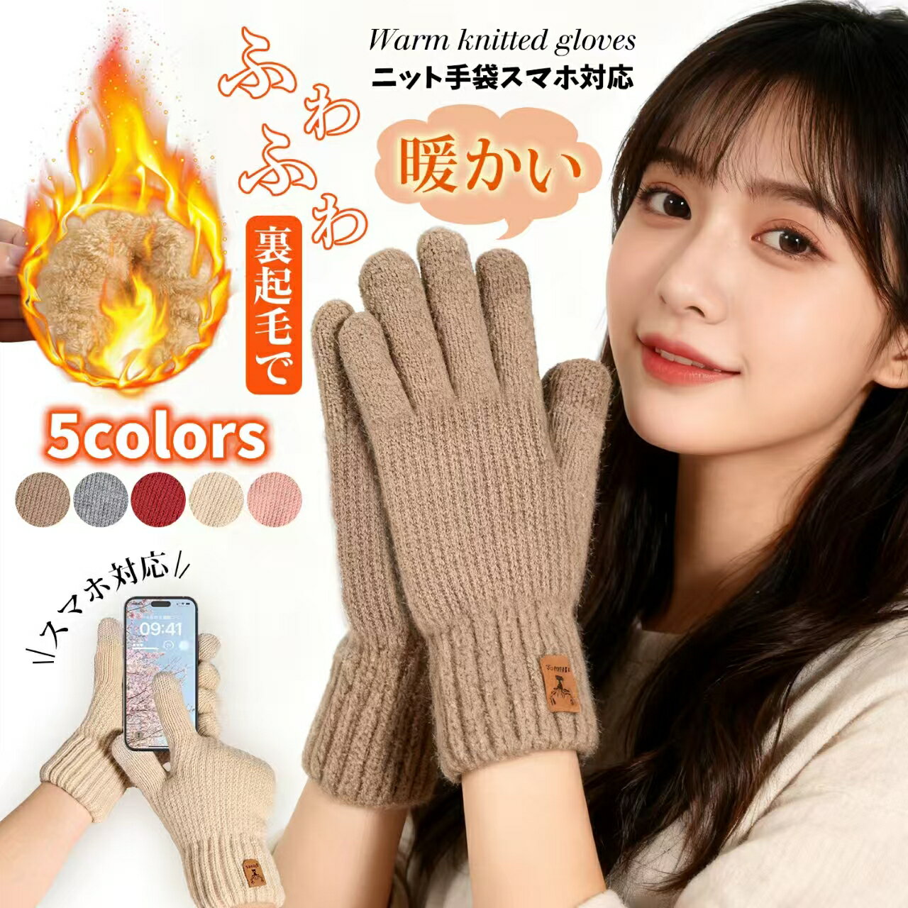 《お得な♪40%OFFクーポン》レディース スマホ対応 冬 手袋 【指先まで裏起毛・360°蓄熱】 防寒 暖かい 保温 ふわふわ 厚手 防風 伸縮 柔らかい おしゃれ スマホ対応 ニット てぶくろ