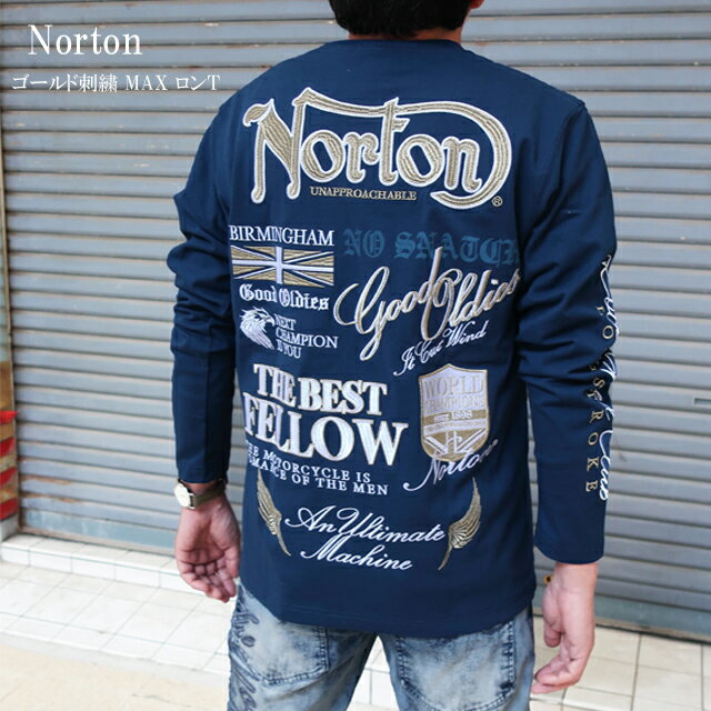 ノートン 長袖tシャツ ゴールド刺繍 261n1101b メンズ ブラック ネイビー L/XL/XXL【Norton/norton/男性/トップス/ロンT/刺繍/クルー/バイカー/ストリート】【2026年モデル】【正規品】