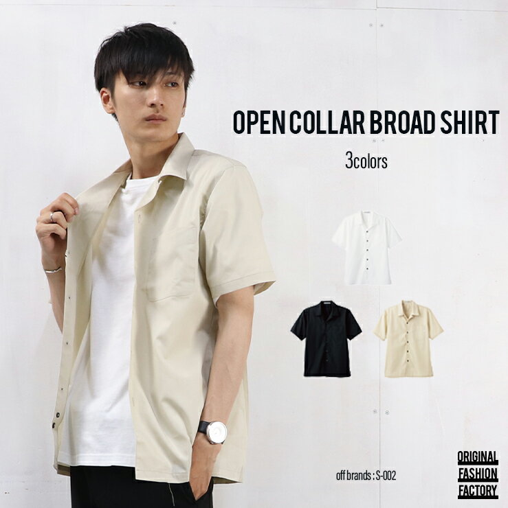 [オープンカラーブロードシャツ] シャツ 送料無料 メンズ シャツ 綿ポリ しっかり 高級感 大きいサイズ ドレス ブロード 生地 きれいめ 半袖 ホワイト ベージュ ブラック 白 黒 シャツ シヤツ 無地シャツ