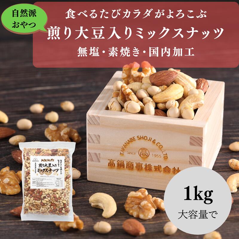 煎り大豆入りミックスナッツ ( 1kg / チャック付き袋 ) 健康 おやつ ( 国内加工 ) / アーモンド クルミ カシューナッツ / お菓子 おつまみ 間食 / 栄養 ダイエット 大豆屋 高鍋商事