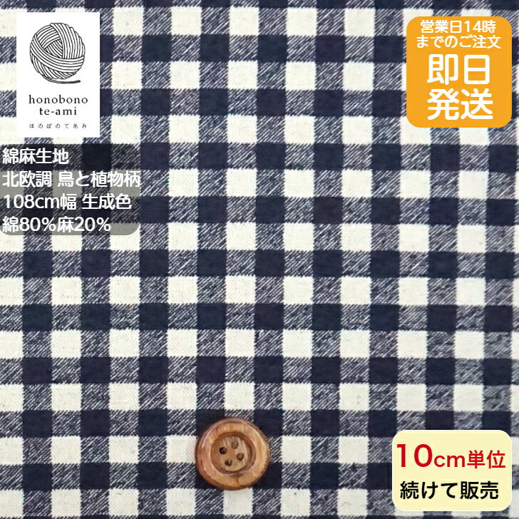 【クーポンでお得】【14時まで即日発送】北欧風 綿麻 キャンバス 8mmチェック柄 生成(カス入)地紺色 約8ミリチェック おしゃれな生地 コットンリネン 布 生地 北欧風 北欧調 綿80%麻20% 即日発送可 メール便発送可能売れ筋