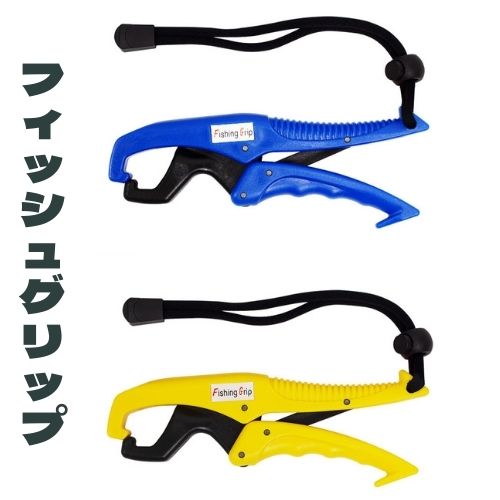 【送料無料】 フィッシュグリップ 魚つかみ フィッシュグリップホルダー 魚掴み器 フィッシュキャッチャー 安全ロープ付 ブルー 黄色 ホワイト 軽量 握りやすく 滑りにくい 落下防止 軽量設計 片手操作