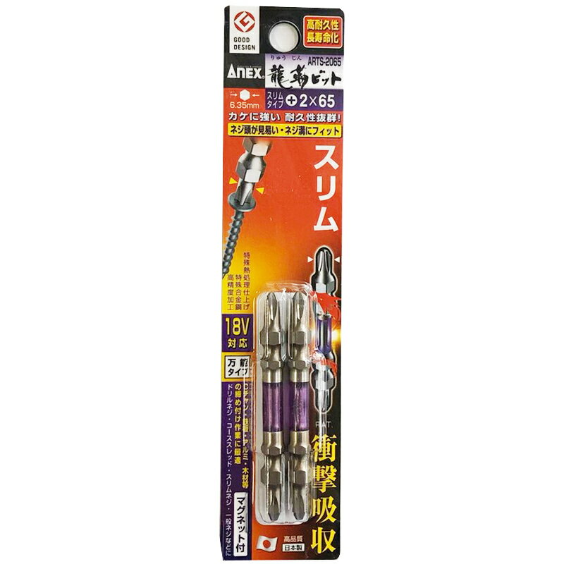 【ネコポスで送料無料】ANEX 龍靭ビット スリムタイプ +2×65