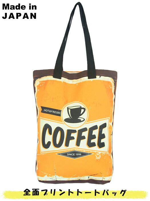 トートバッグ Mサイズ COFFEE A C-202200404 メンズ レディース 日本製 オリジナルトートバッグ 全面プリントトートバッグ オリジナルプリント キャンバス レトロ おしゃれ コーヒー A4