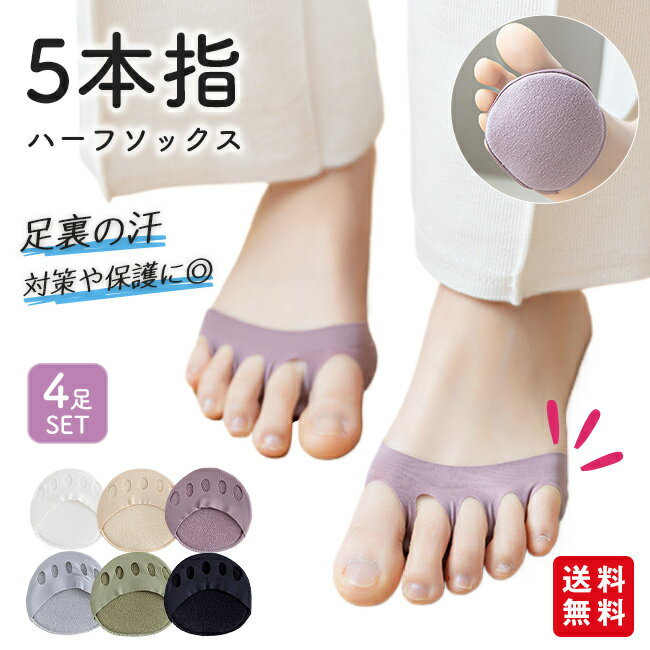 ハーフソックス 5本指 フットカバー 4足セット つま先ソックス 足指ソックス レディース 足底パイル レディース インナーソックス クッション付き