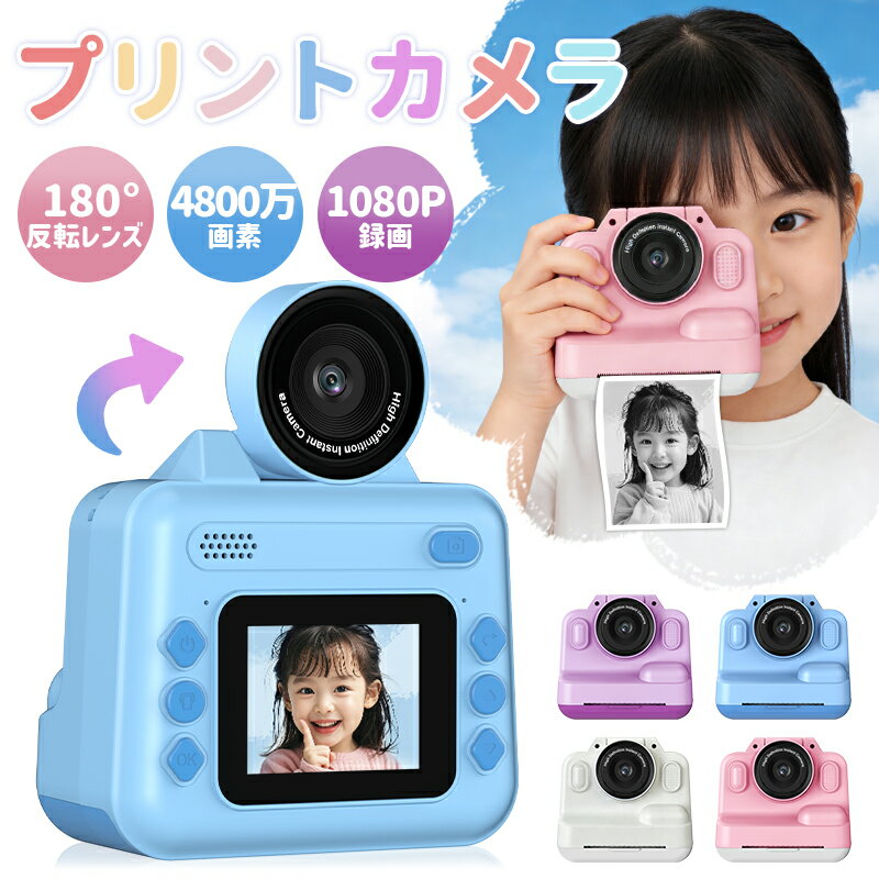 キッズカメラ プリントカメラ トイカメラ デジタルカメラ 子供用 印刷 カメラ プリンタカメラ インスタント プリンター サーマル プリンター フォト プリンター シール 感熱紙 4800万画素 1080P 16倍ズーム 自撮り 180°回転 知育玩具 プレゼント 可愛い 男の子 女の子