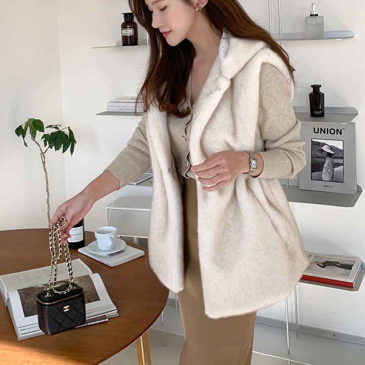 ファーベスト ベスト レディース オーバーサイズ フェイクファー ミドル丈 ジャケット アウター エコファー羽織り 秋冬 ふわふわ もこもこ 大人リッチ アウター コート おしゃれ ココア ホワイト ファージャケット ボア アウター