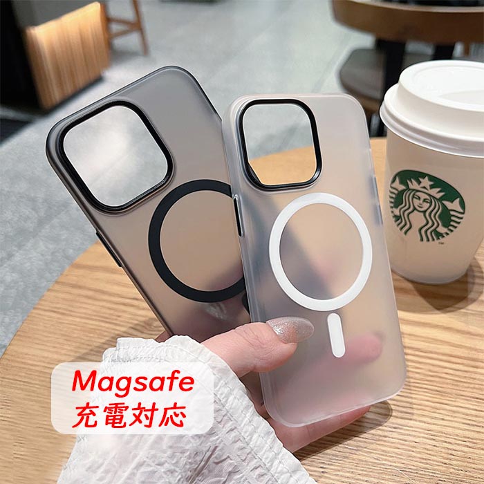 iPhone16ケース アイフォンケース マグセーフ magsafe ワンタッチ吸着 ワンタッチ充電 半透明 ブラック グレー ホワイト 高見え カメラレンズ保護 シンプル 大人っぽい おしゃれ シンプル ユニセックス