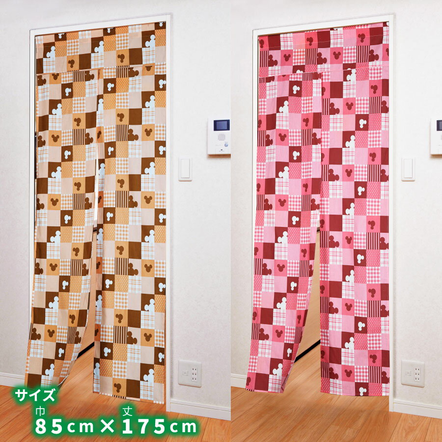 ディズニー 隠れミッキー柄 暖簾 のれん 間仕切り 85×175cm ピンク ブラウン