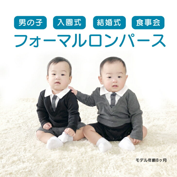 子供服 男の子 フォーマル ロンパース Vネックフォーマルロンパース べビー服 グレー ブラック 70cm 80cm ふたご 双子