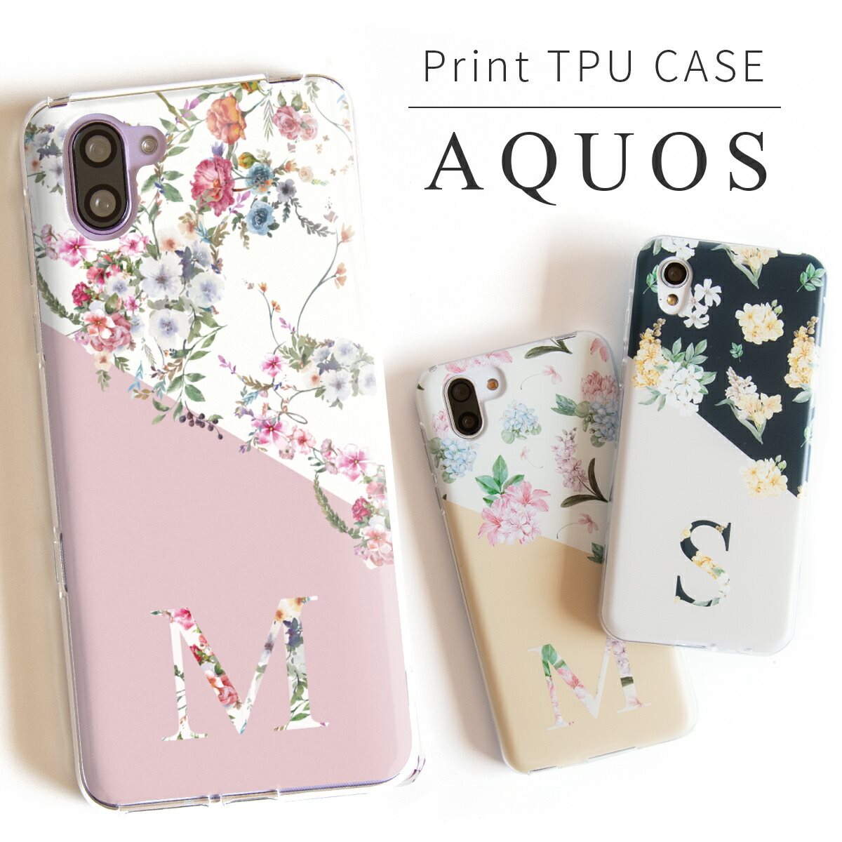 【最大30%offクーポン】 推し活 ケース 名入れ 文字入れ Aquos wish3 ケース 可愛い シンプルスマホ7 ケース basio active2 ケース SHG12 AQUOS sense6 ケース かわいい aquos senes3 ケース SH-02M スマホケース 韓国 バイカラー 花 おしゃれ フラワー イニシャル 花柄