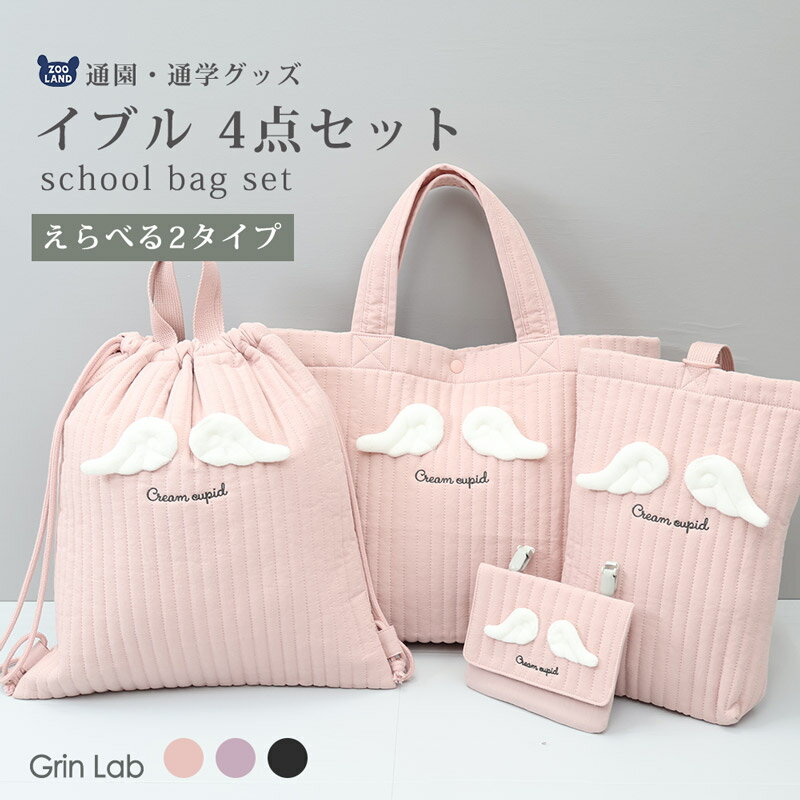 入園入学4点セット 入園入学セット レッスンバッグ 手提げバッグ ナップサック シューズバッグ 移動ポケット イブル ヌビキルト キルティング 洗える 体操服袋 巾着袋 上履き入れ 上靴入れ シューズケース 体操着袋 女の子 学校用品 習い事 通園 通学 エンジェルコア 天使
