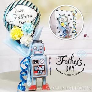 父の日 ブリキ ロボット ヴィンテージ レトロ お祝い 贈り物 花 ギフト プレゼント お父さん 感謝の気持ち 父の日ミニバルーン花束付ブリキロボットセット
