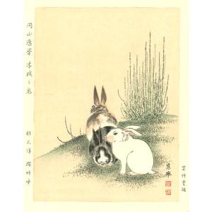 円山応挙 木版画 木賊と兎 Okyo Maruyama Woodcut