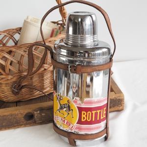 昭和レトロ 希少魔法瓶 保温水筒ボトル 革ショルダー付き バンビ BAMBI BOTTLE インテリア雑貨 アンティークボトル キッチン雑貨