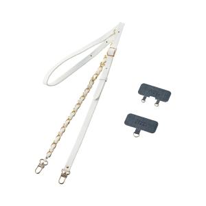 エレコム スマホ ショルダー ストラップ 約55〜68cm ソフトレザー&ゴールドチェーンタイプ ストラップシート付 長さ調整可 斜めがけ 肩掛け 首掛け ホワイト