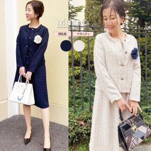 授乳 マタニティ オリビア ツイードパールボタンスーツセット ジャケット&ワンピ2点セット ママスーツ フォーマル お宮参り 卒園 卒業 安い