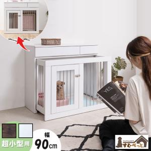 \レビューでプレゼント/天然木を使用した幅90cmスライド式ペットケージ 犬用品 犬小屋 ケージ ゲート すむぺっと カウンター下収納シリー
