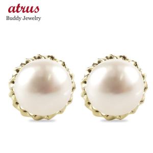ゴールド ピアス ペア 淡水パール ボタンパール スタッドピアス 10金 10k イエローゴールドk10 女性
