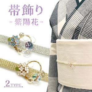 帯飾り 飾り紐 紫陽花 ゴールド シルバー おしゃれ 浴衣紐 帯締め 帯留め 和装 レディース ワンポイント