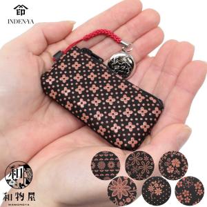 印傳屋 印伝 キーケース 4702 小花 黒×赤 メンズ レディース キーホルダー 紺 本革 レザー 日本製 和柄 甲州印伝 和物屋 山梨 ギフト