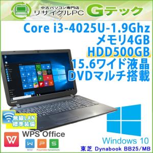 中古 ノートパソコン Windows10 東芝 Dynabook BB25/MB 第4世代Core i3-1.9Ghz メモリ4GB HDD500GB DVDマルチ 15.6型 無線LAN WPS Office / 3ヵ月保証