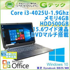 中古 ノートパソコン Microsoft Office搭載 Windows10 東芝 Dynabook BB25/MB 第4世代Core i3-1.9Ghz メモリ4GB HDD500GB DVDマルチ 15.6型 無線LAN / 3ヵ月保証