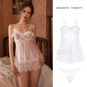 ランジェリーセット レディース ベビードール セクシー インナー ホワイトチュール シースルー Tバックセット 裾レース ミニ丈 フリル キュート