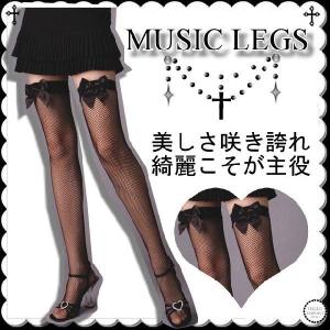 MUSIC LEGS ストッキング フィッシュネット 黒 リボン