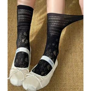 MILKY POWDER 総花柄ラッセル レース付きクルーソックス 23-25cm ブラック 黒 レディース