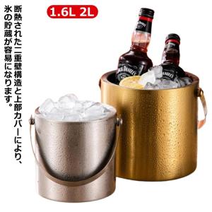 キャンプ 2L 大容量 二重壁断熱 ゴールド 蓋付き アイススクープ ハンドル付き ステンレス鋼 1.6L ワイン シャンパンクーラー 酒 ポータブ